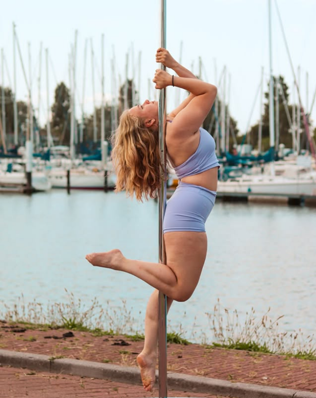 Pole Fitness is a form of exercise which incorporates the entire body. Pole Fitness (pole sport) originates from pole dance. It combines artistic dance, acrobatics and strength exercises. Through this sport you will build up strength, flexibility and endurance. Read more here.